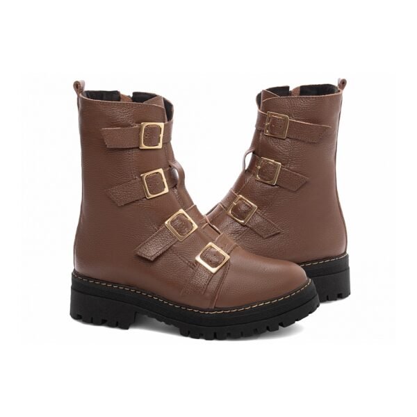 Enfeites: Zíper na Cor Marrom e Fivelas de ajuste na Cor Dourado;