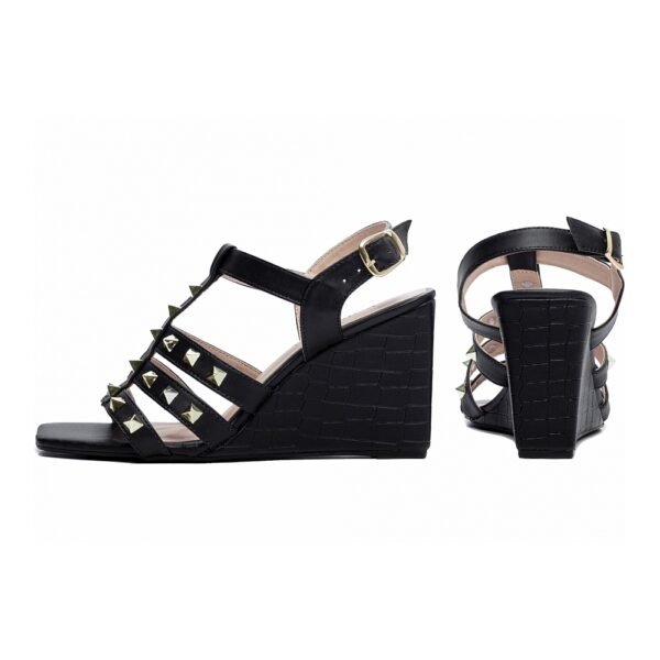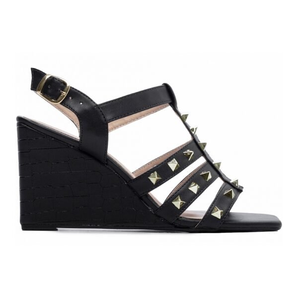 Plataforma: Traseiro / Salto com 9 cm de Altura, Revestido em Napa Croco Preto;