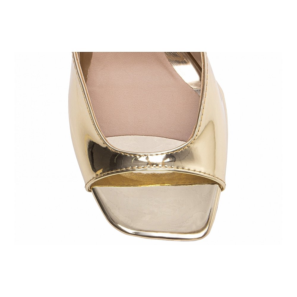 Salto: Cunha com 7 cm de altura revestida em Verniz Metalizado Specchio Ouro Light;