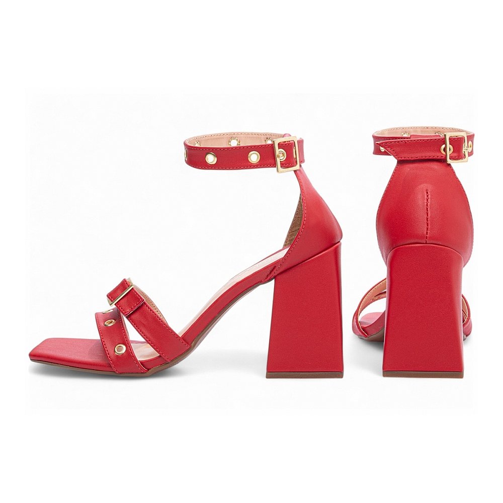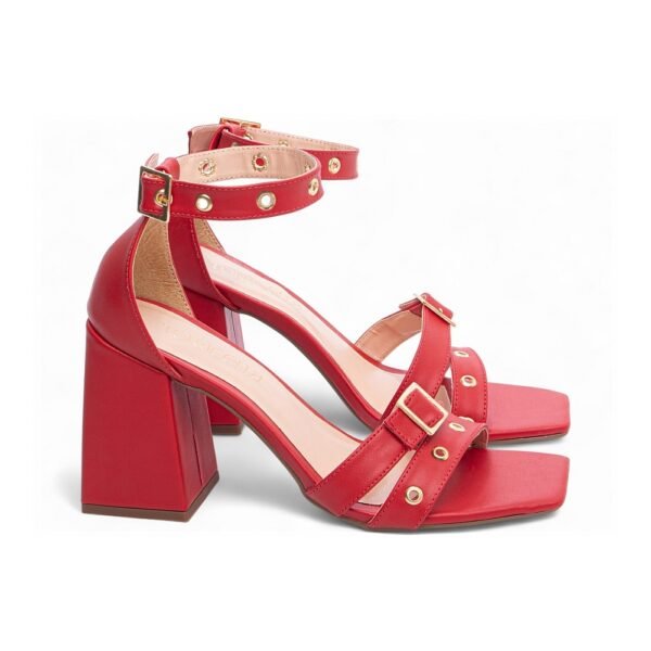 Salto: Grosso com 9 cm de Altura Revestido em Napa Vermelho;
