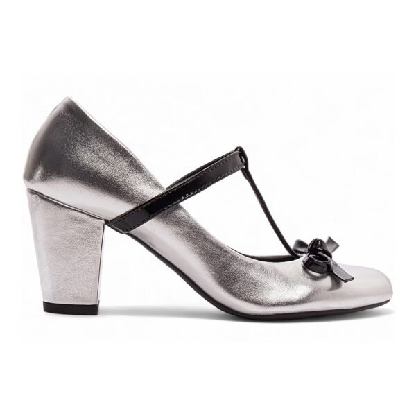 Salto: 7 cm de Altura encapado em Napa Metalizado Prata;