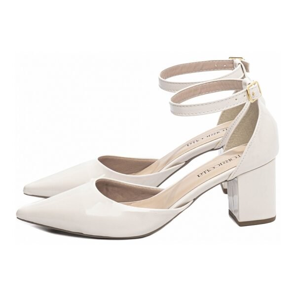 Salto: 6,5 cm de Altura encapado em Verniz Off White;