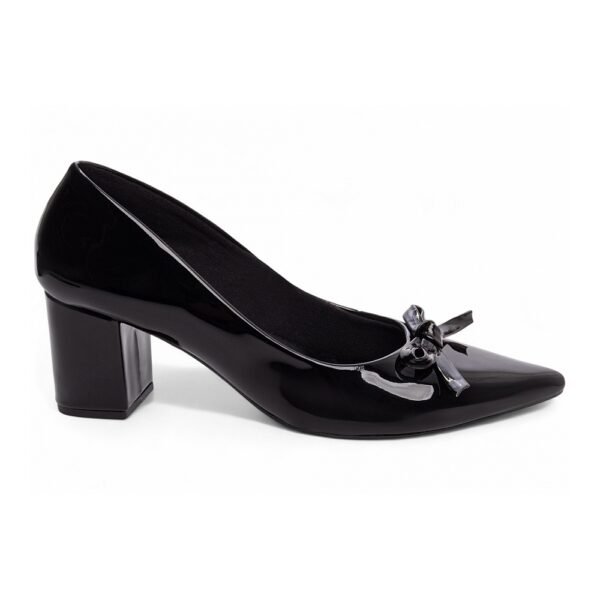 Salto: Grosso com 6,5 cm de Altura Revestido em Verniz Preto;