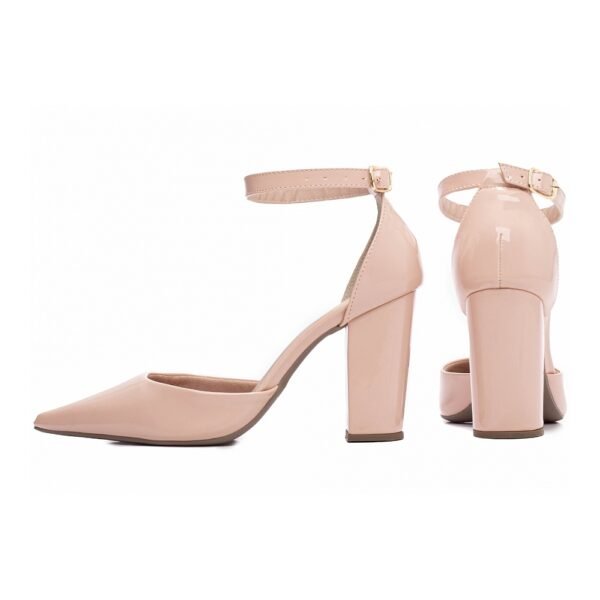 Salto: 9 cm de Altura encapado em Verniz Rose;
